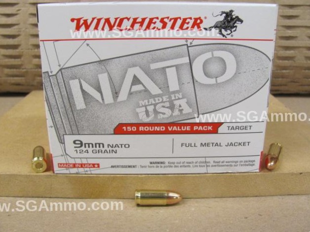 150 Round Value Pack - 9mm NATO Winchester 124 Grain FMJ Ammo - USA9NATO